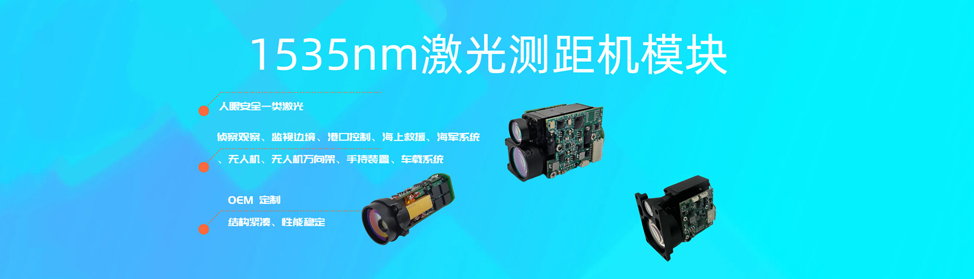 包括高品質(zhì)鉺玻璃、脈沖激光測(cè)距機(jī)模塊、鉺玻璃激光器、InGaAs APD(帶前置放大器和濾光片的光電二極管)、驅(qū)動(dòng)接收電路等。我們實(shí)行全產(chǎn)業(yè)鏈自主研發(fā)和智造,確保產(chǎn)品質(zhì)量的穩(wěn)定性和可靠性。