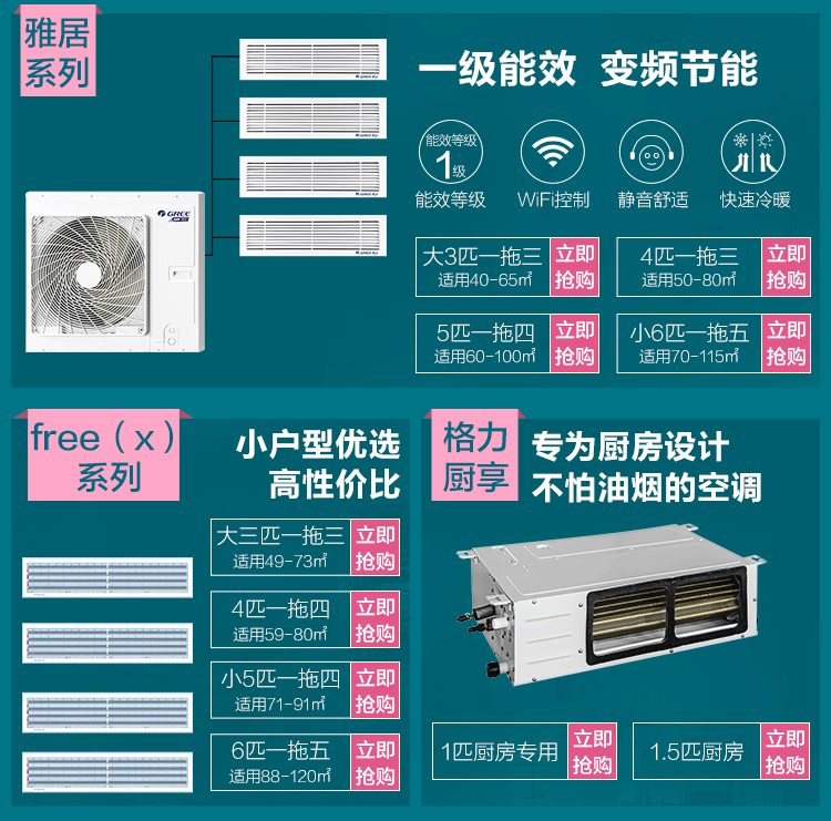 家庭型中央空調(diào),強勁制冷,特別適合小戶型,適用面積49-120㎡ 。